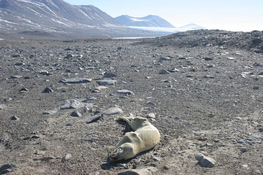 Looking down the Taylor Valley from Canada glacier to Lake Fryxell and the Commonwealth Glacier, mumified seal in foreground. Antarctica NZ, accessed 29/04/2026, https://adam.antarcticanz.govt.nz/nodes/view/32026