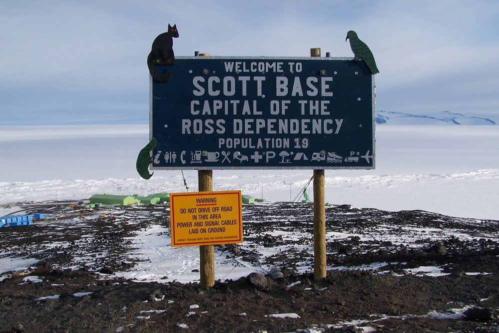 Welcome to the Ross Dependency sign, with Scott Base showing below sign
