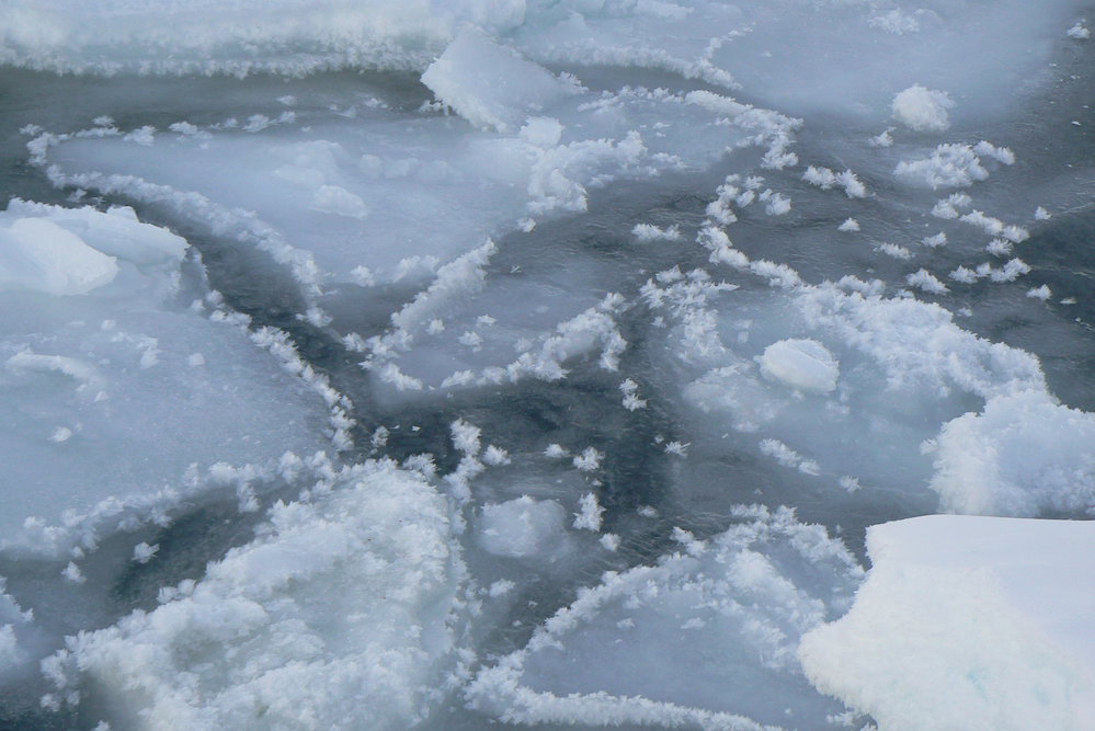 Frost flowers on tide crack at Cape Bird