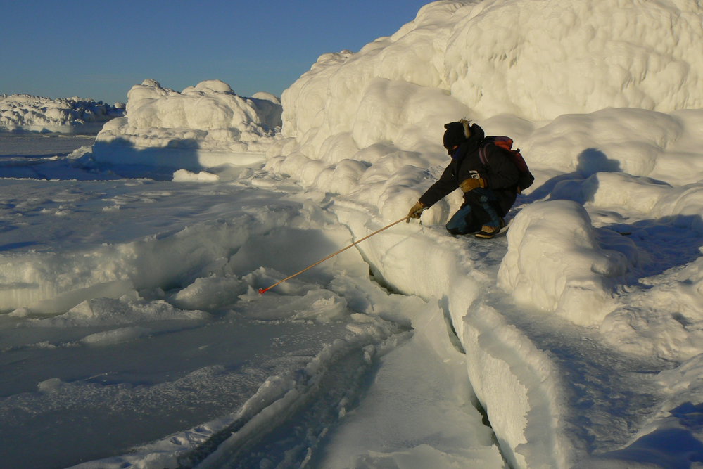Tim Hay collecting frost flowers at Cape Bird