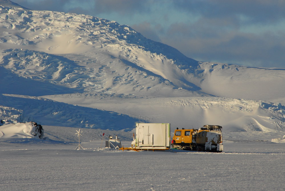 NIWA instrument setup at Inaccessible Island with Pakaru Icefalls in the background.. Antarctica NZ, accessed 13/04/2026, https://adam.antarcticanz.govt.nz/nodes/view/32211