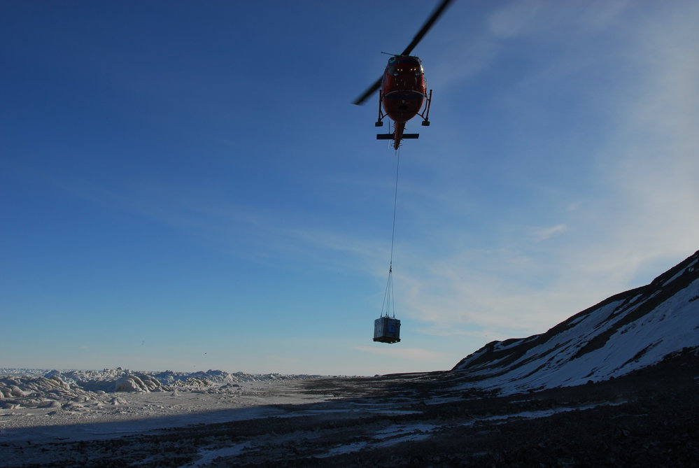 NIWA instrument arriving underslung by USAP helicopter to Cape Bird