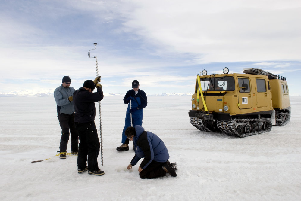 Drilling to check for cracks in the sea ice before driving across. Antarctica NZ, accessed 03/04/2026, https://adam.antarcticanz.govt.nz/nodes/view/32322