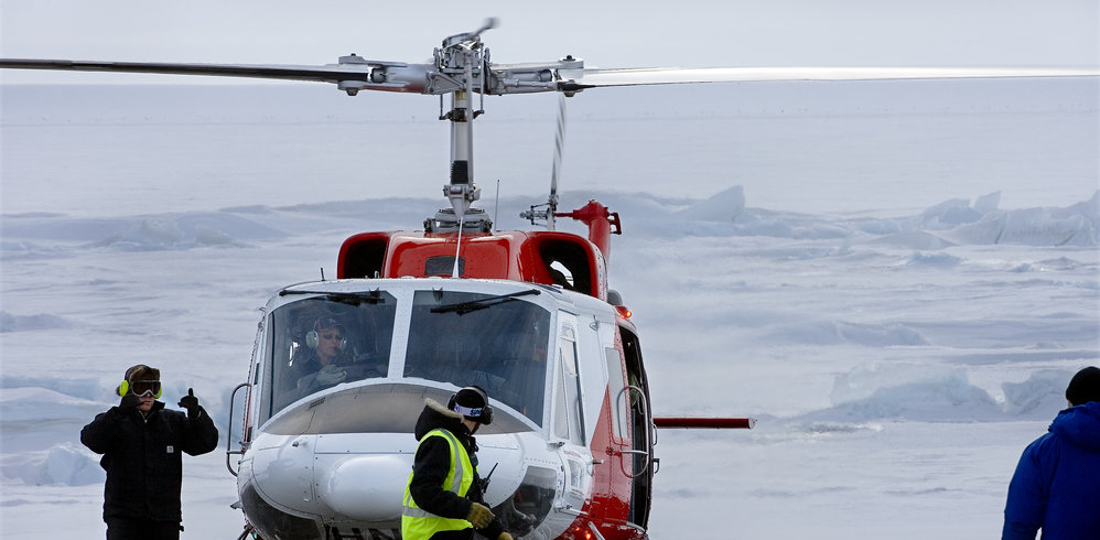 Close-up of helicopter with pressure ridges behind