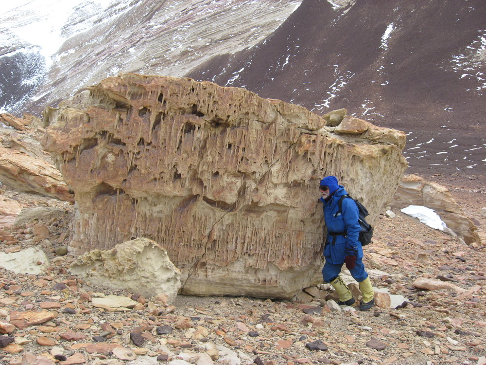 'Pipe rock', intense burrowing by long Skolithos, in the basal Altar Mountain Formation, Handsley Valley (also providing a useful windbreak).. Antarctica NZ, accessed 05/04/2026, https://adam.antarcticanz.govt.nz/nodes/view/32443