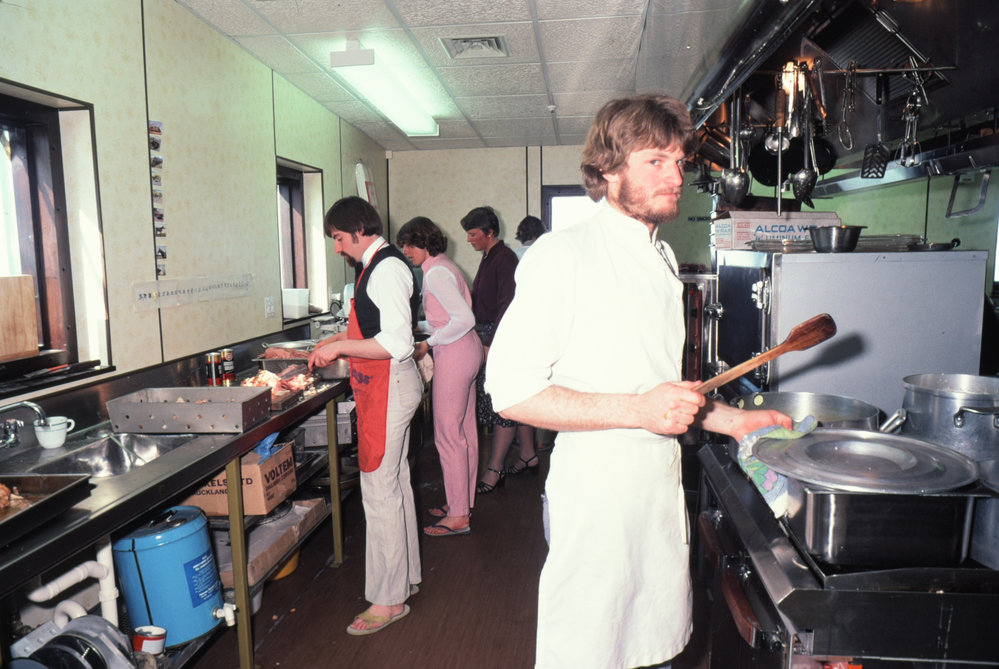 DescriptionChristmas Dinner Preparations 1982DepictsHarrallWhiteheadOsborneStanleyPhotographerKim WesterskovSeason1982-1983Date TakenBetween 1st December 1982 and 31st December 1982OriginalSlideNo. People2-5LocationScott BaseGeolocation[1] Position