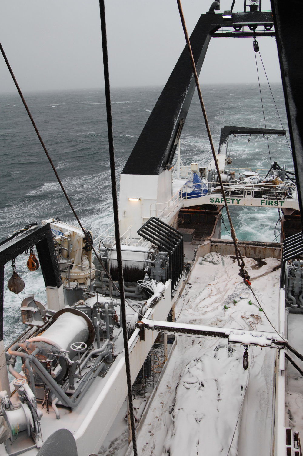 Snowclad trawl deck, RV Tangaroa, Ross Sea