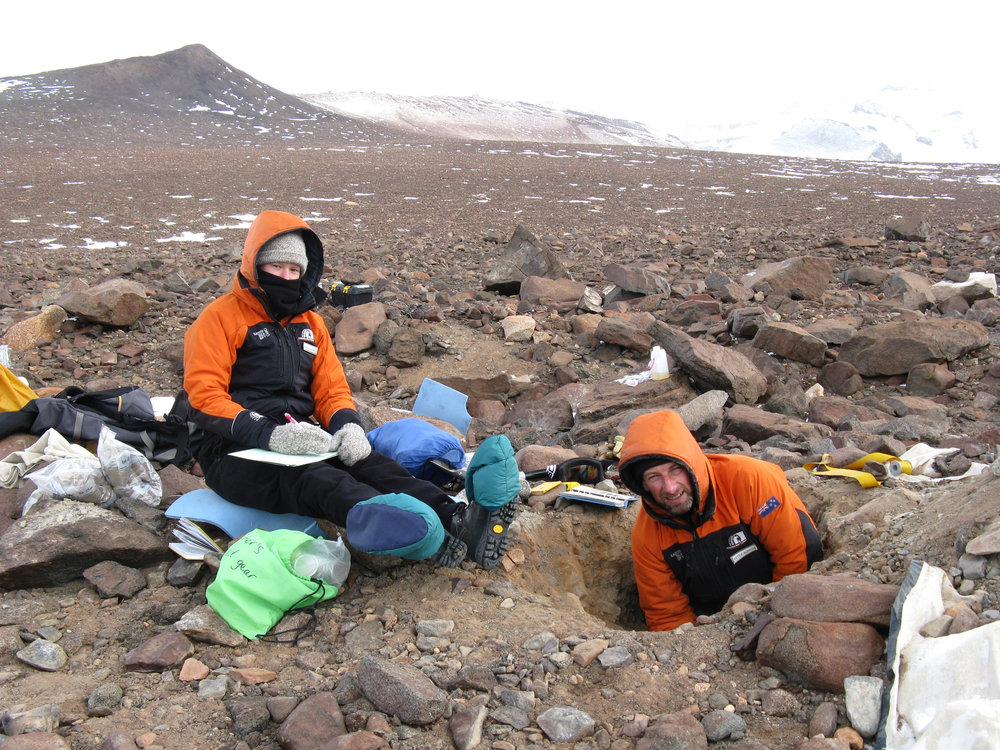 Fiona Shanhun and Peter Almond describing and sampling a soil pit. "Unnamed Valley", Darwin Mountains.. Antarctica NZ, accessed 24/03/2026, https://adam.antarcticanz.govt.nz/nodes/view/32781