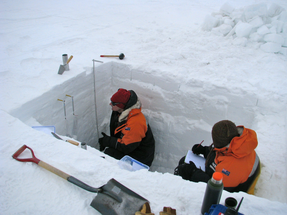 Wolfgang Rack and Nikolai Kreutzman studying snow morphology