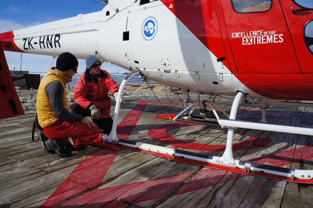 Craig Stevens and Bob McElihnney checking the sling-load releases on the Helicopters NZ vehicle.. Antarctica NZ, accessed 04/04/2026, https://adam.antarcticanz.govt.nz/nodes/view/32935