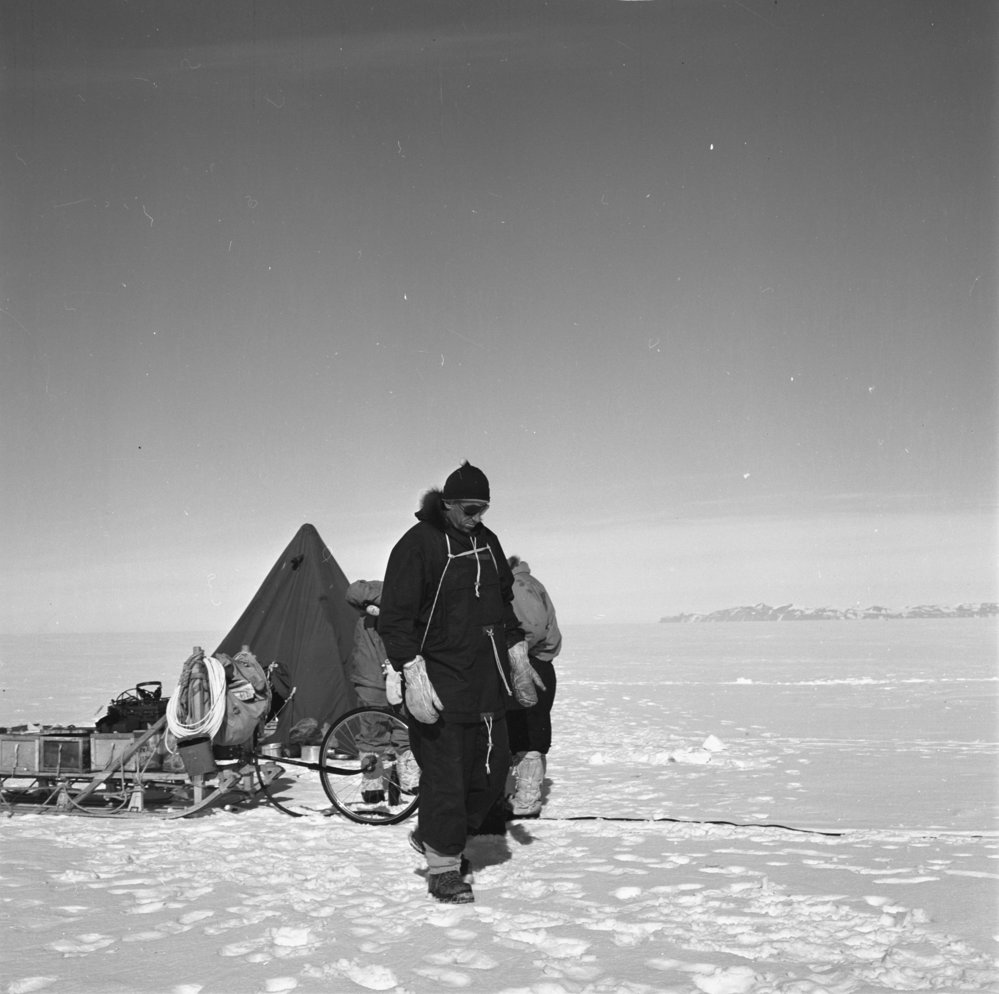Sir Edmund Hillary inspecting the site for Skelton Depot. Antarctica NZ, accessed 02/04/2026, https://adam.antarcticanz.govt.nz/nodes/view/33198