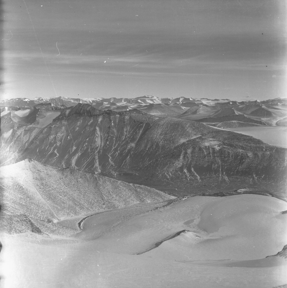 DescriptionPan of Lower Wright Glacier from Mt Newall. Central Wright ValleyProgrammeTrans Antarctic ExpeditionEventTAESeason1957-1959Date Taken1957-1959 SeasonOriginalFilmLocationMount NewallGeolocation[1] Position
