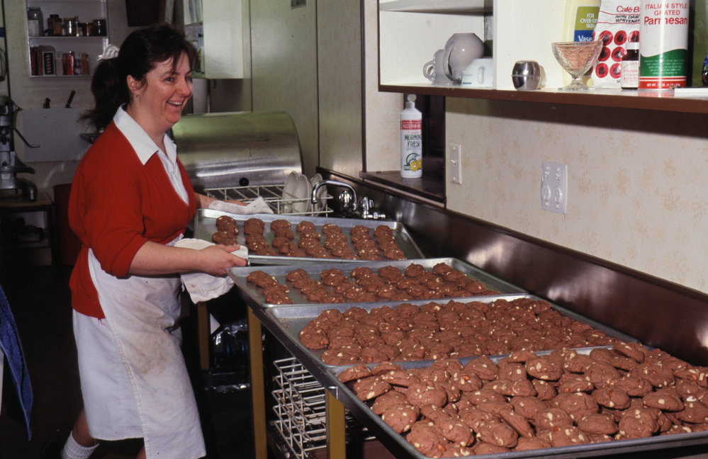 DescriptionHow Many Cookies can Winter-Overs Eat? Wendy Strid in the kitchenDepictsWendy StriddPhotographerKim WesterskovSeason1989-1990Date TakenBetween 1st September 1990 and 30th September 1990OriginalSlideNo. People1LocationScott BaseGeolocation[1] Position