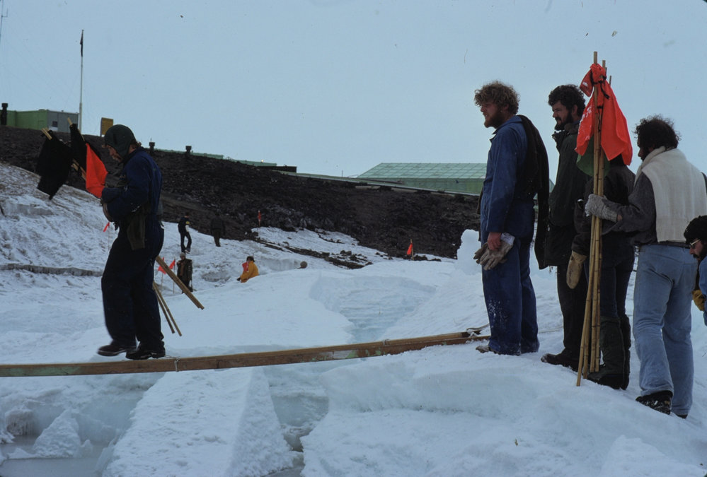 DescriptionCrossing Pressure Ridges to Scott Base, New Years Day 1980PhotographerNigel S RobertsSeason1979-1980Date Taken1979-1980 SeasonOriginalSlideNo. People5-10LocationScott BaseGeolocation[1] Position