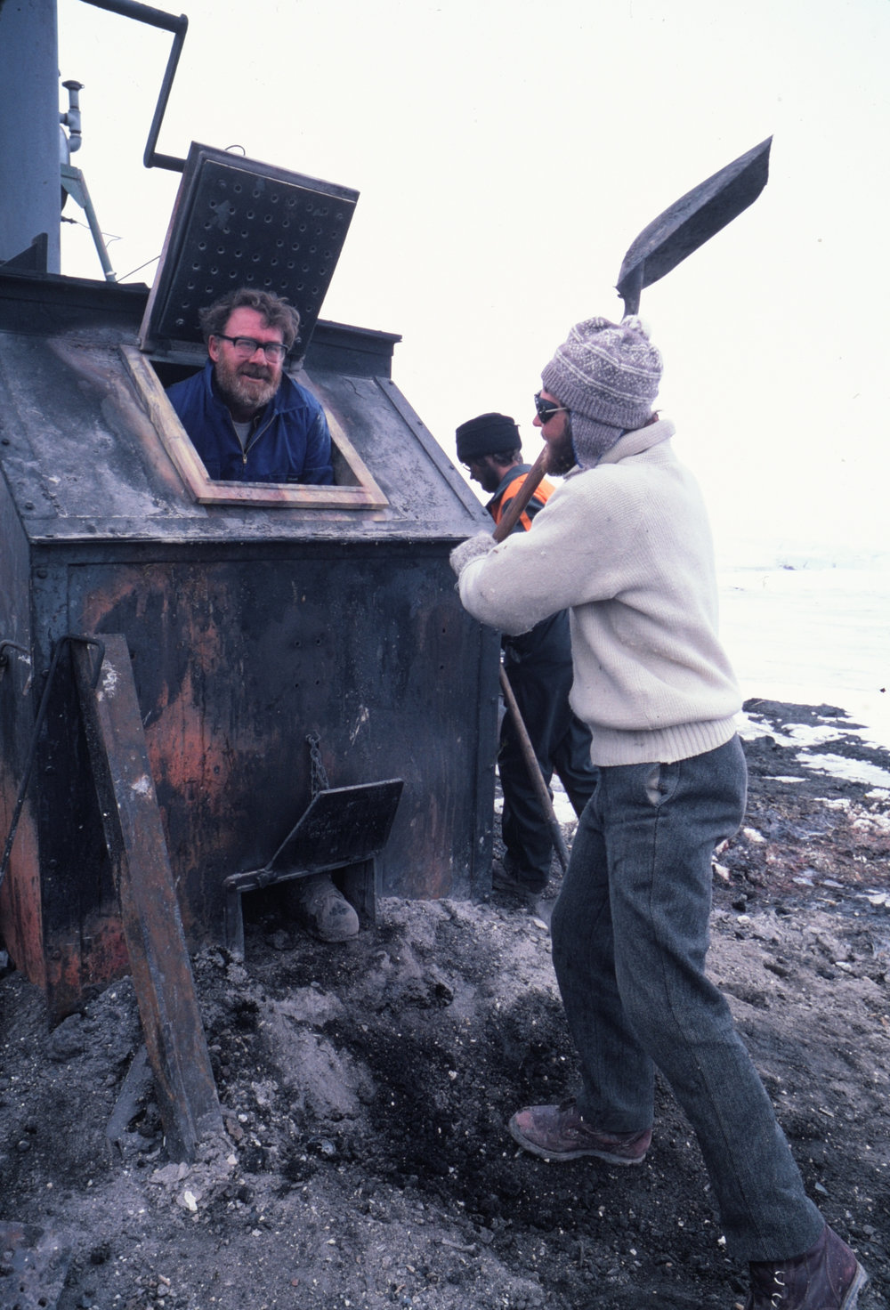 DescriptionMiller and Tinnelly clean the incineratorDepictsMillerTinnelly PhotographerKim WesterskovSeason1982-1983Date Taken1982-1983 SeasonOriginalSlideNo. People2-5LocationScott BaseGeolocation[1] Position