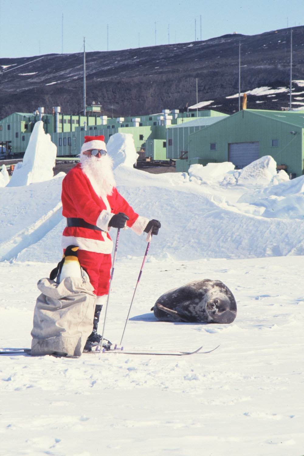 DescriptionFather Chrismaas skiing at Scott BaseDepictsFather ChristmasPhotographerKevin RandlesSeason1992-1993Date TakenBetween 1st December 1992 and 31st December 1992OriginalSlideNo. People1LocationScott BaseGeolocation[1] Position