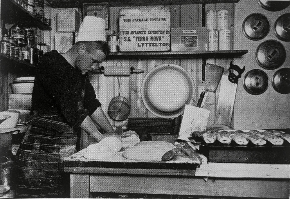 DescriptionClissold, the Cook, Making Bread. 1912-1914DepictsThomas ClissoldPhotographerHerbert PontingOriginalGlass PlateLocationCape EvansGeolocation[1] Position