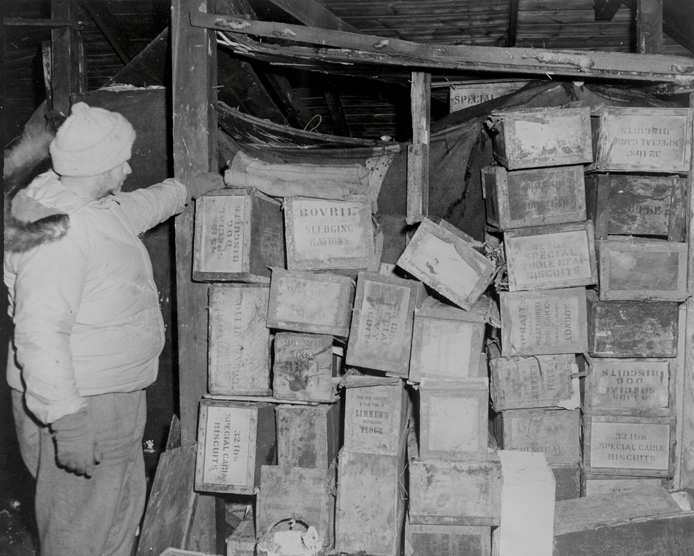 DescriptionEric Gibbs and Stacks of Old Biscuit Crates in Scott's 'Discovery' HutDepictsEric GibbsSeason1963-1964Date Taken1963-1964 SeasonOriginalGlass PlateNo. People1LocationHut PointGeolocation[1] Position
