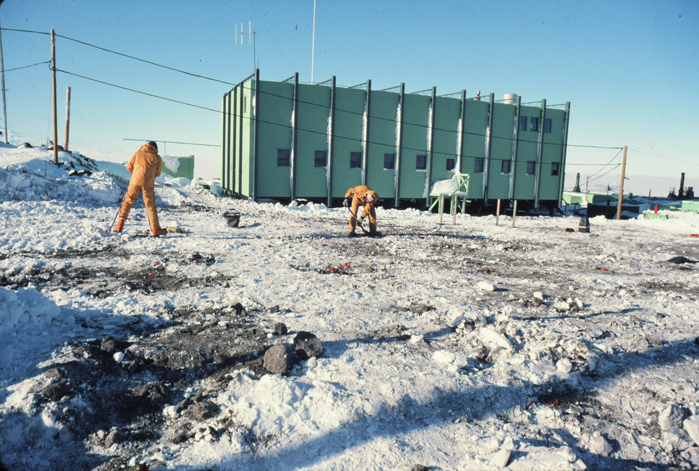 DescriptionSurveyors Pegging Out Geophysical Lab, Scott BaseSeason1983-1984Date Taken1983-1984 SeasonOriginalSlideNo. People2-5LocationScott BaseGeolocation[1] Position