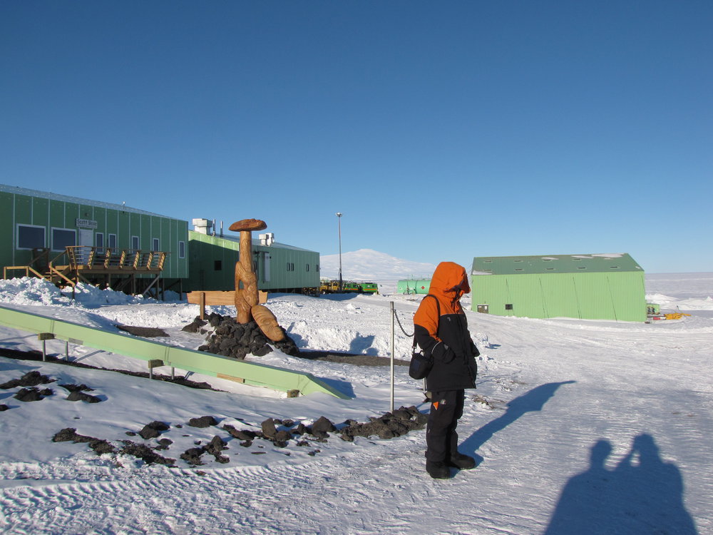Dr James Brundell (University of Otago) standing in the "front" of Scott Base during the Otago Space Physics group Expedition 7 to the ice.