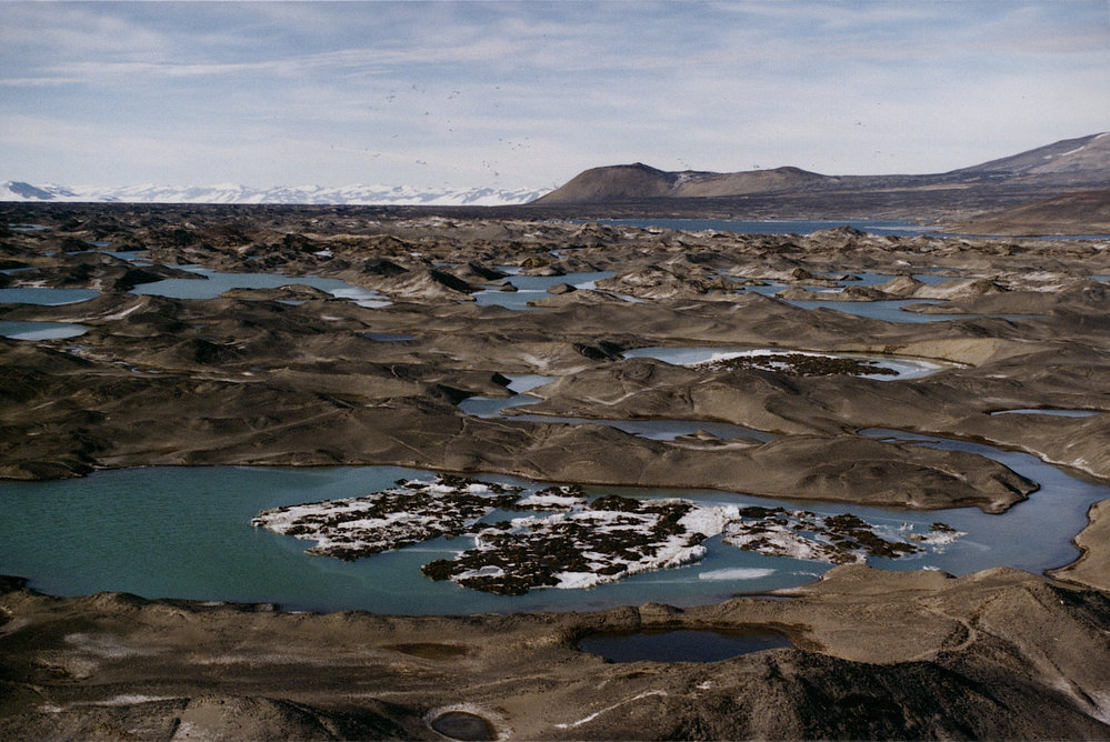 Aerial view of melted ponds