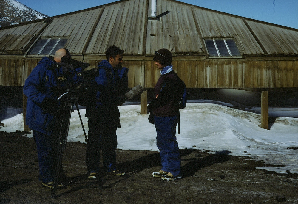 Holmes interview outside Discovery Hut