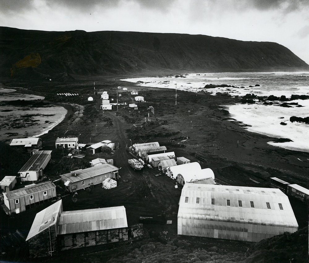 DescriptionAustralian bases| Macquarie Island Station| from Wireless Hill| Left in foreground is Hasselborough House| the station's womens' quarter| right in foreground is new stores building| 1977PhotographerJutta Hesel Season1976-1977Date TakenBetween 1st January 1977 and 31st December 1977OriginalPrintLocationMacquarie Island
