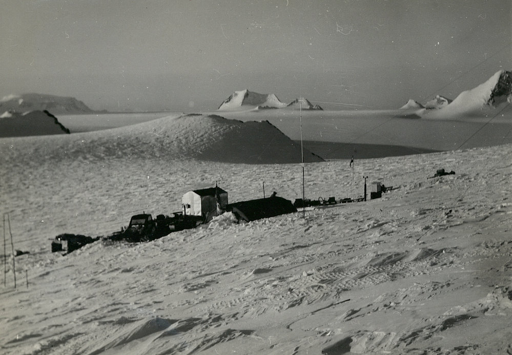 DescriptionSouth Africa's Borga Base, where SA field parties overwinter. Established in May 1969 it is of the 'Parcoll' hut type construction.PhotographerGeological SurveyOriginalPrintLocationVesleskarvet