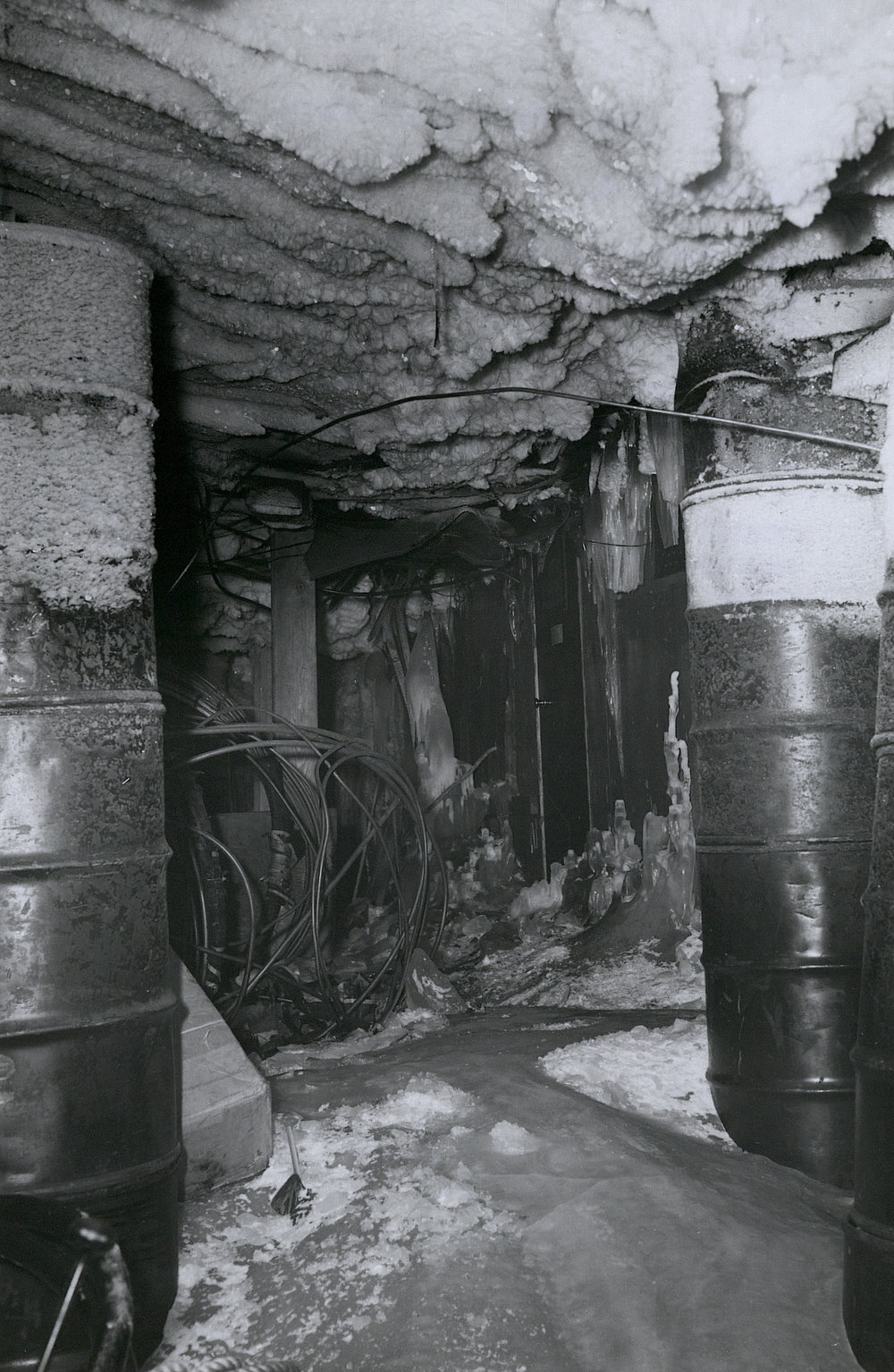 This complex of broken beams crushed barrels and encroaching ice crystals is typical of the inside of the old Byrd Station. Antarctica NZ, accessed 04/04/2026, https://adam.antarcticanz.govt.nz/nodes/view/39957