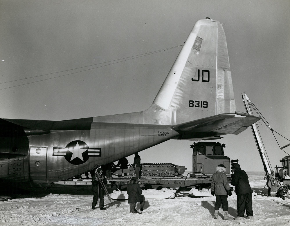 The cab and tracks of The Peter snow miller being unloaded from a VX-6 C-130 at Byrd Station . Antarctica NZ, accessed 04/04/2026, https://adam.antarcticanz.govt.nz/nodes/view/40002