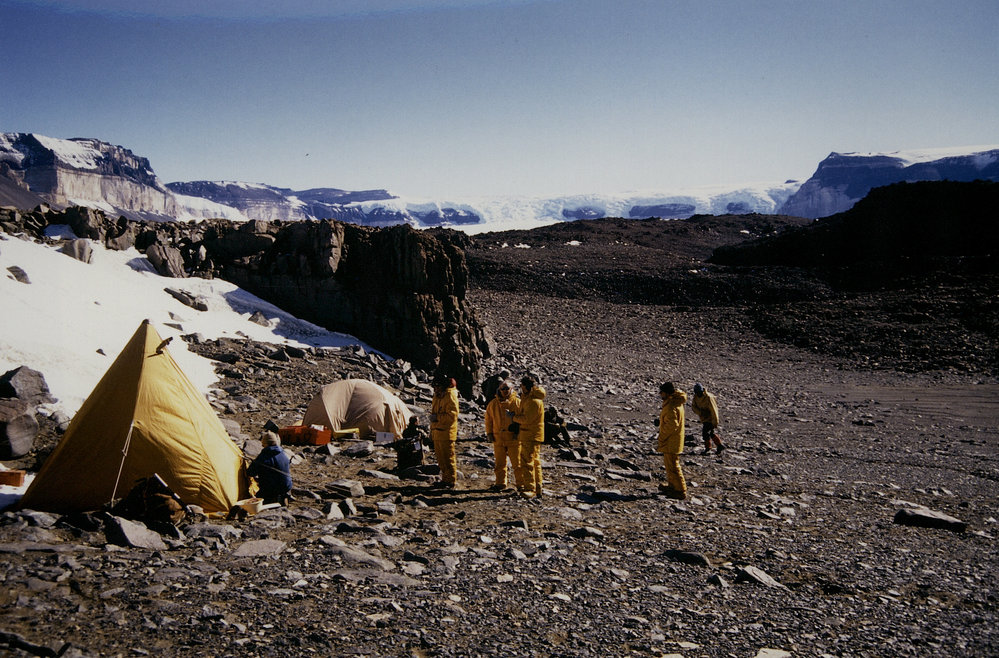 Geological campsite| Labyrinth| Dry Valleys| VXE 6 Ice Falls in the background| 5/12/87