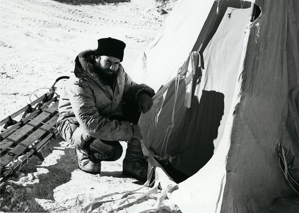DescriptionSurveyor Bill Wicks| and polar tent damaged in a gale| 1976-1977DepictsBill WicksPhotographerRobin OrmerodSeason1976-1977Date Taken1976-1977 SeasonOriginalPrintNo. People1