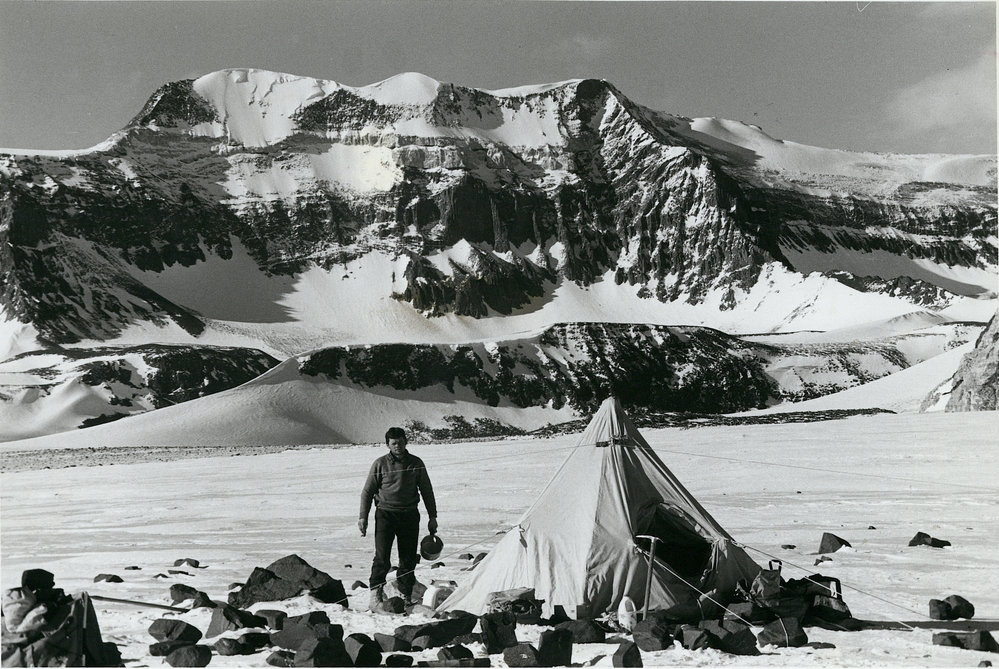 DescriptionGeological field camp| Waikato party| surrounding area showing typical Britannia Ridge geology| beacon and dolerite interlayered| 1978Season1978-1979Date Taken1978-1979 SeasonOriginalPrintNo. People1LocationBritannia Range