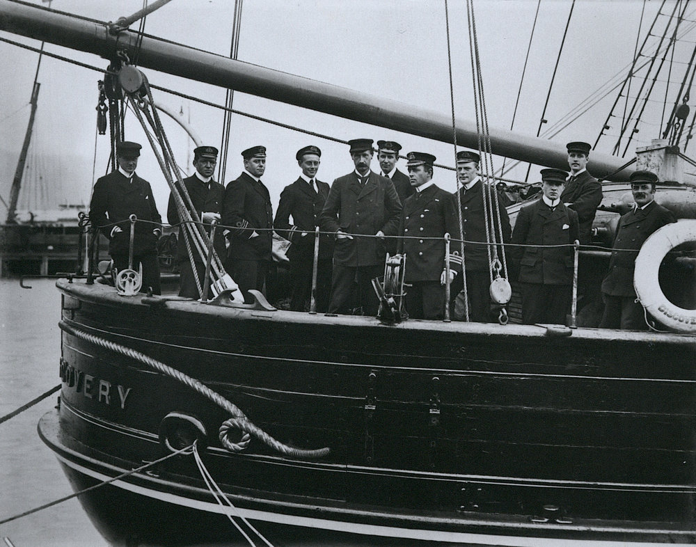 Discovery Officers on the ship's deck before departure from Lyttelton 1901. Antarctica NZ, accessed 20/03/2026, https://adam.antarcticanz.govt.nz/nodes/view/40264