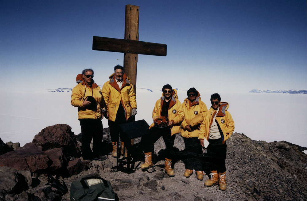 DescriptionAtop Observation Hill, Ross Island. L-R Prof Les Holbrow, Dr Mike Taylor, Hon Phil Goff, Dr Ian Speden, Dominic O'Connell.DepictsLes HolbrowMike TaylorPhil GoffIan SpedenDominic O'ConnellOriginalPrintNo. People2-5LocationObservation Hill