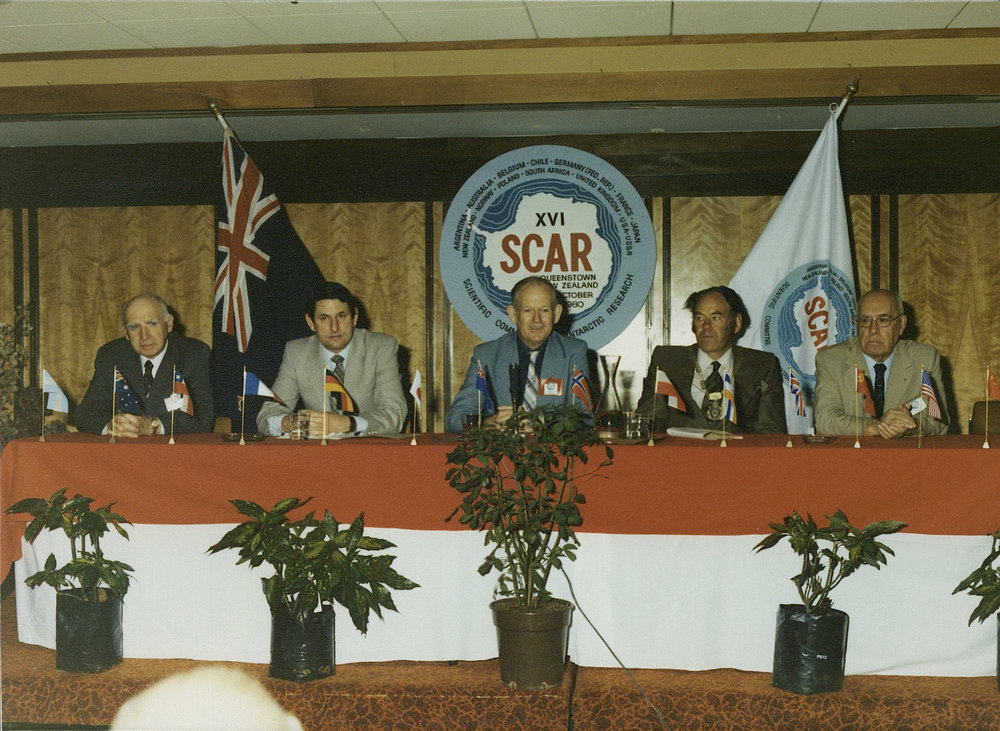 DescriptionOpening of 16th SCAR MeetingDepictsJim GrantBill BirchPhotographerR BissettSeason1980-1981Date TakenBetween 1st October 1980 and 31st October 1980OriginalPrintNo. People2-5LocationQueenstown