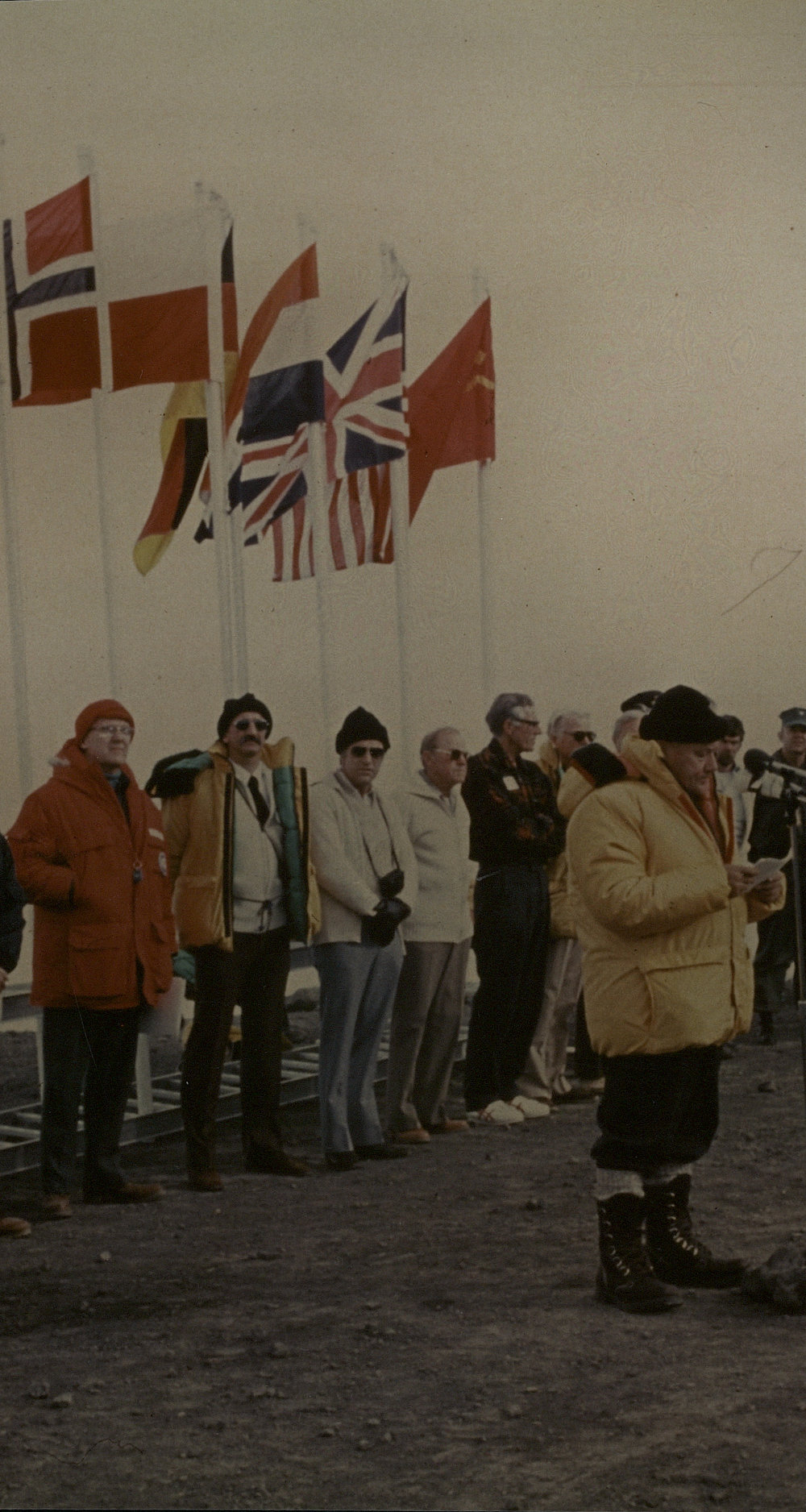 Description25th Anniversary of Scott Base| 20th January 1982| Sir Robert Muldoon| NZ Prime MinisterDepictsSir Robert MuldoonPhotographerNational Science FoundationDate Taken1982-01-20OriginalPrintNo. People>10LocationScott Base