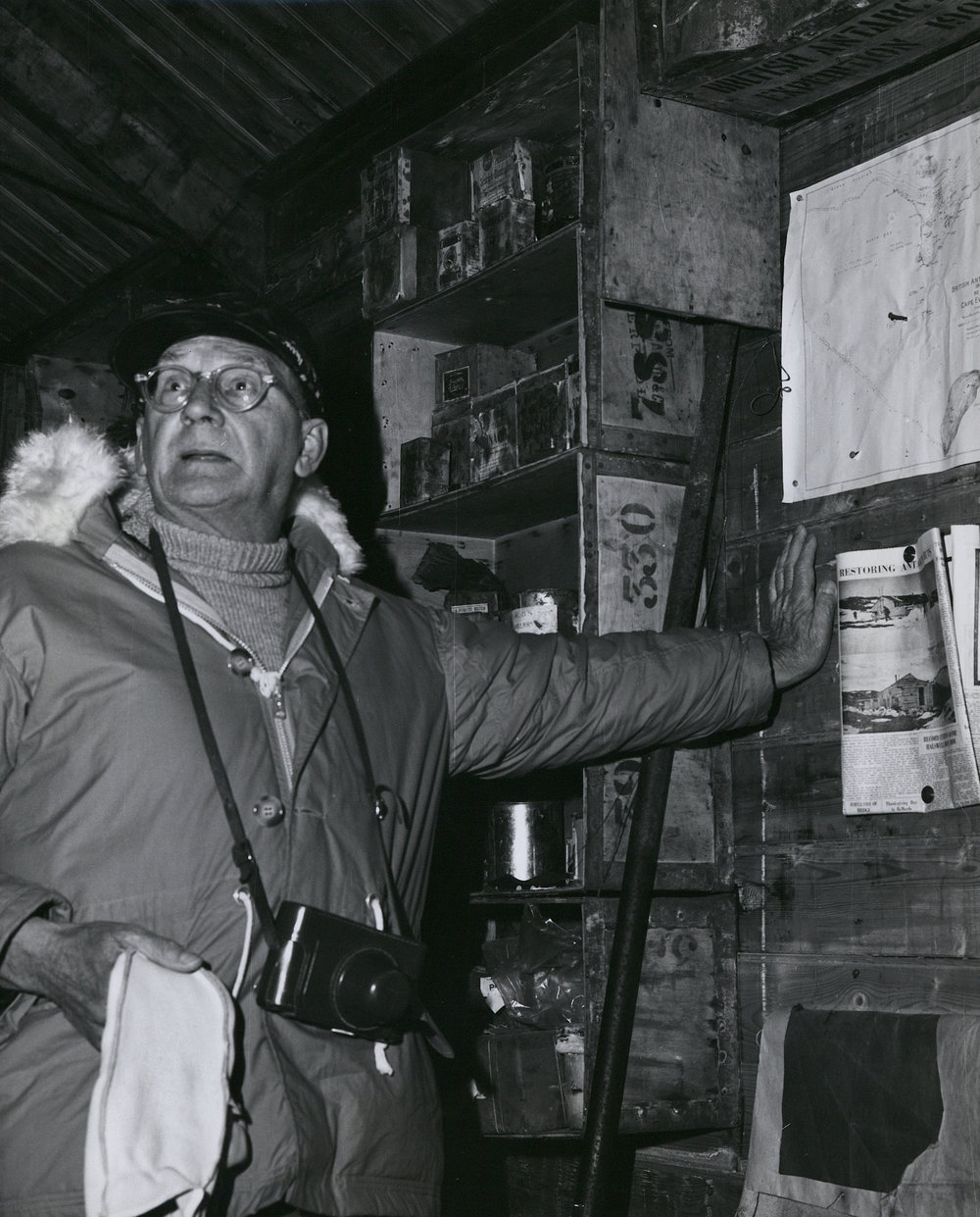 DescriptionSir Charles Seymour Wright visiting Shackleton's Hut at Cape Royds. He is pointing to an old map showing the scope of the British Antarctic Expedition from 1910-1913. 1960DepictsCharles Seymour WrightPhotographerNational Science FoundationDate Taken1960OriginalPrintNo. People1LocationCape Royds