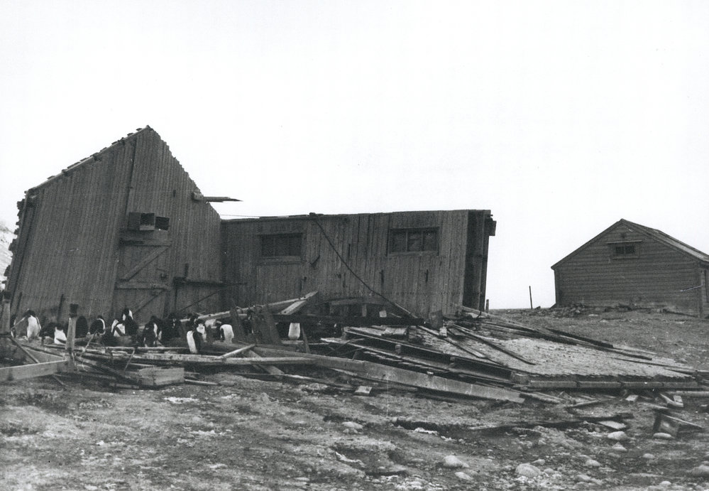 DescriptionScott's Hut at Cape Adare with Borchgrevink's Hut in the background Feb 1973.PhotographerLawrie CairnsSeason1972-1973Date Taken1972-1973 SeasonOriginalPrintLocationCape Adare