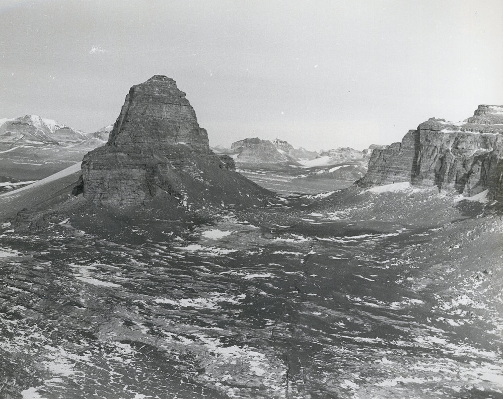 DescriptionMt Dido (2070m) and Mt Electra (right), Olympus Range from the north, Asgaard Range in distance, 1975-1976PhotographerTerry HealySeason1975-1976Date Taken1975-1976 SeasonOriginalPrintLocationMount Dido