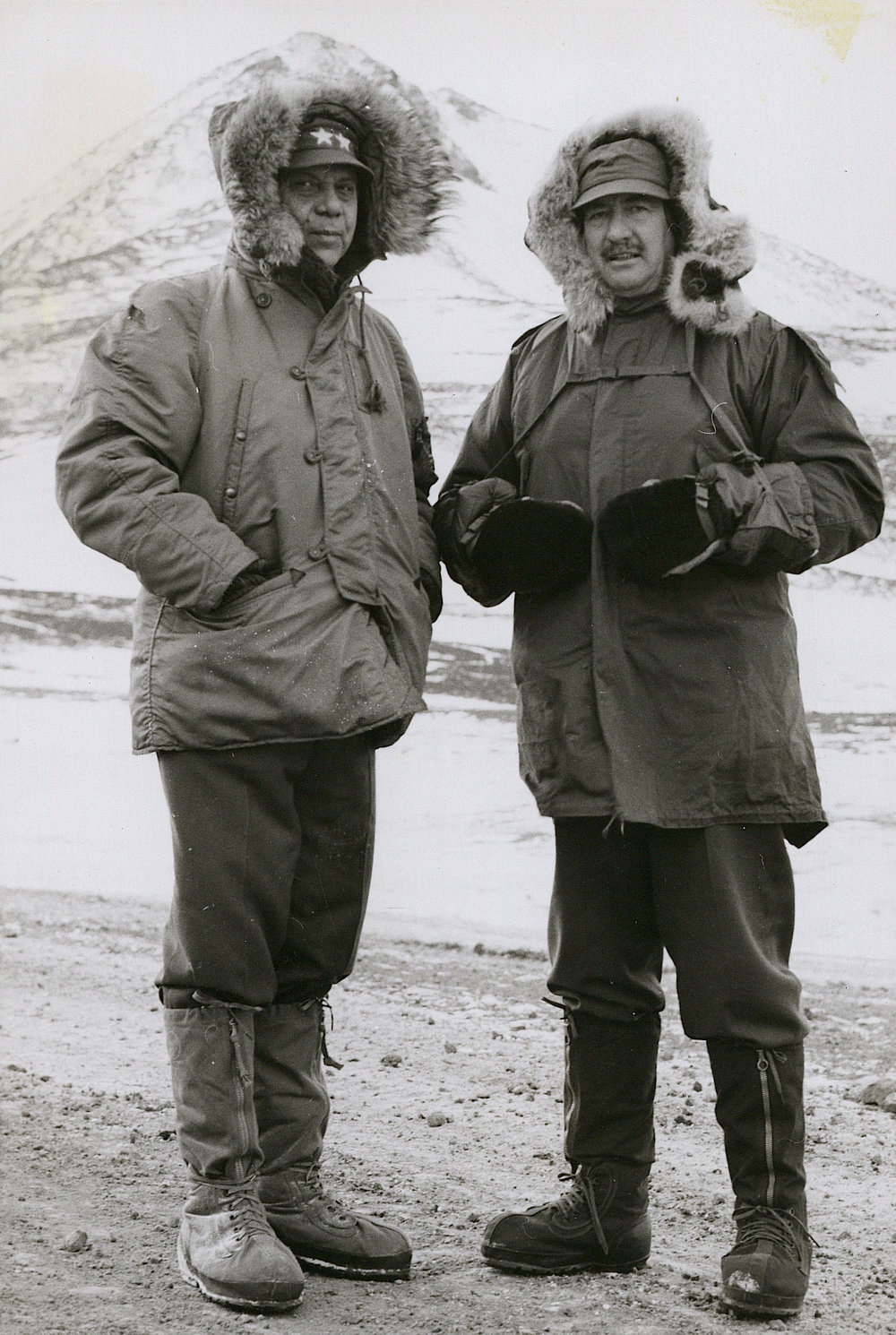 DescriptionRear Admiral Dufek and Brigadier W S McKinnionDepictsAdmiral George J DufekW S McKinnionSeason1958-1959Date Taken1958-1959 SeasonOriginalPrintNo. People2-5LocationMcMurdo Sound