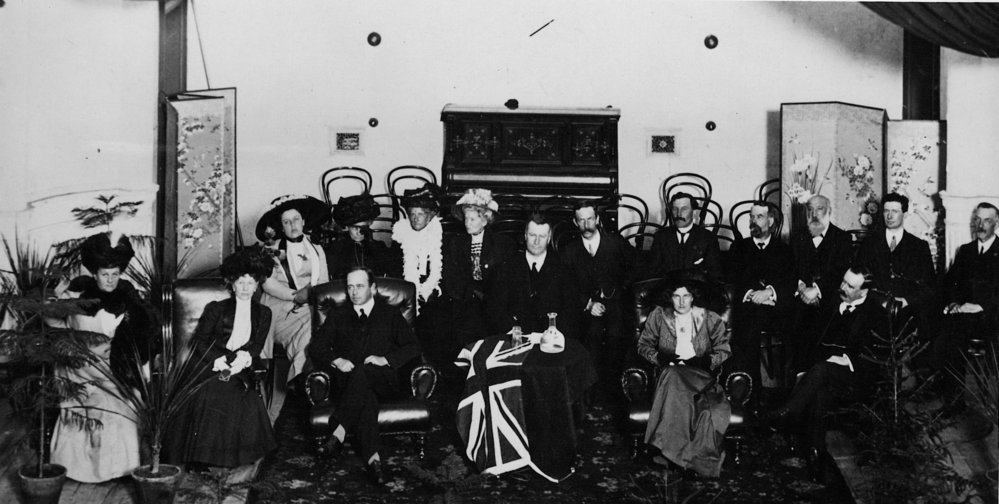 DescriptionCaptain RF Scott's 1910-13 expedition: a formal group at a reception given by the citizens of Wellington before his South Pole Expedition. Captain Scott is seated third from left in the front.