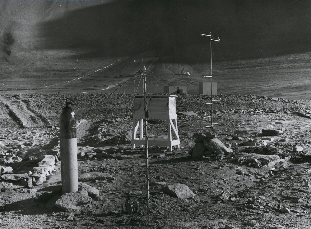 DescriptionMeteorological enclosure at Vanda Station, 1969-1970.PhotographerB McKerrowSeason1969-1970Date Taken1969-1970 SeasonOriginalPrintLocationVanda Station