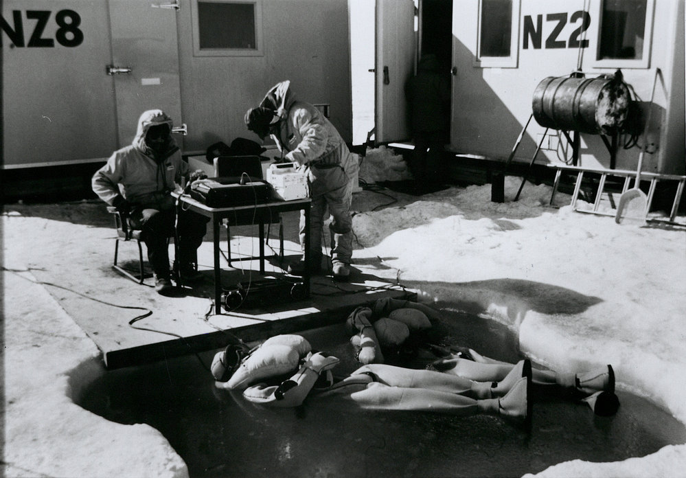 Drs S Legg and T Richardson monotoring R Janek and Dave Palmer in Quick Don immersion suit. Antarctica NZ, accessed 20/03/2026, https://adam.antarcticanz.govt.nz/nodes/view/40928