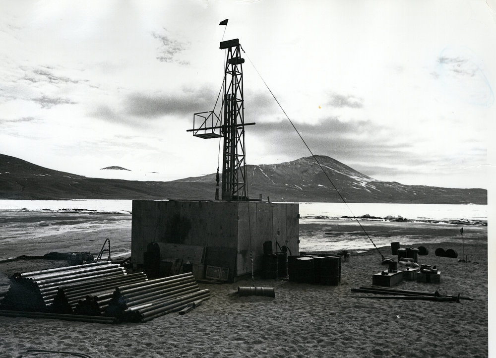 DescriptionDVDP drilling rig at New Harbour, Jan 1974.PhotographerFrederick P SzydlikSeason1973-1974Date Taken1973-1974 SeasonOriginalPrintLocationNew Harbour