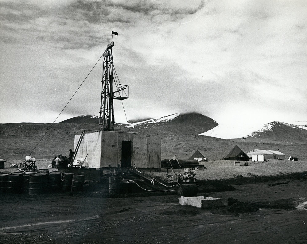 DescriptionDVDP drill rig at New Harbor, Jan 74.PhotographerFrederick P SzydlikSeason1973-1974Date Taken1973-1974 SeasonOriginalPrintNo. People2-5LocationNew Harbour