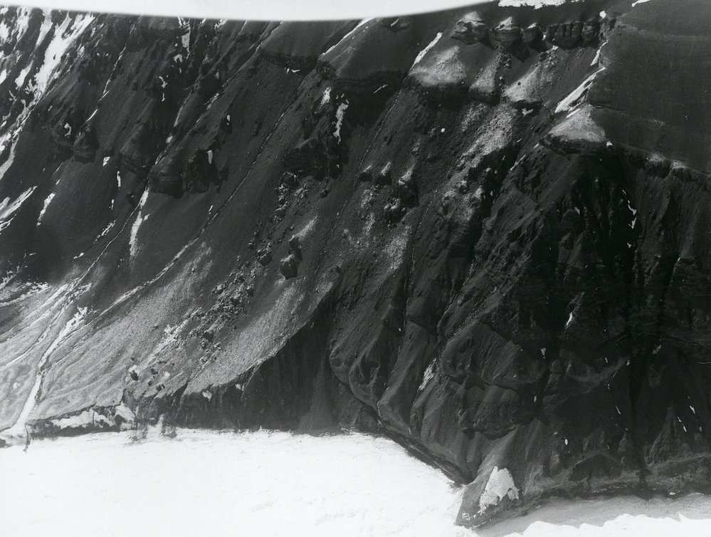 DescriptionPart of Franklin Island Adelie penguin colony| note penguins nesting in high cliffs| 6/12/81PhotographerP R WilsonUnknownSeason1981-1982Date Taken1981-1982 SeasonOriginalPrintLocationFranklin Island