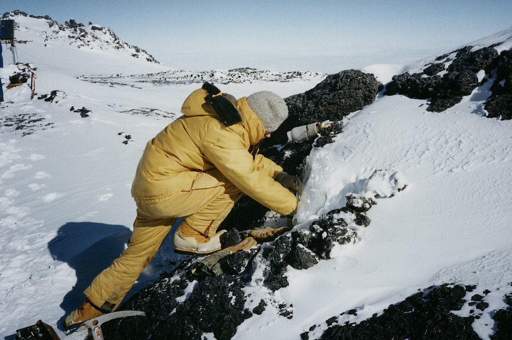 DescriptionBrent O'Brien replacing the battery for the cones infrasonic microphone. Telemetry transmitter at far left, RRD, Dec 89.DepictsBrent O'BrienSeason1989-1990Date Taken1989-1990 SeasonOriginalPrintNo. People1