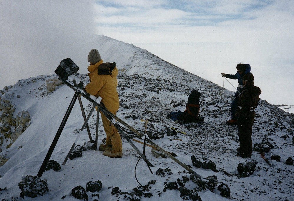 DescriptionBrent o'Brien examintes the TV camera on Erebus creater rim. Kennedy and Shimizu are watching| RRD| Dec 1989DepictsBrent O'BrienShimizuBrent O'BrienPhotographerUnknownSeason1989-1990Date Taken1989-1990 Season1989-1990 SeasonOriginalPrintNo. People2-52-5LocationMount ErebusMount Erebus