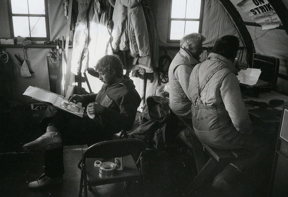DescriptionInside new NSF Jamesway hut on Erebus Bill McIntosh (NSF) P Otway and G Blick 1984-1985DepictsBill McIntosh Peter OtwayGraeme BlickPhotographerB ScottUnknownSeason1984-1985Date Taken1984-1985 SeasonOriginalPrintNo. People2-5LocationMount Erebus